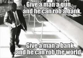 You and I know that "The Banksters" are raping the system for everything that they can get before implosion occurs. You and I know the politicians, central bankers, and a very large percentage of big business executives - and a whole fuckload of lawyers - know they are doing wrong. Unlike politicians, bureaucrats and their Praetorian, the banksters and financial malefactors will be harder to identify in the aftermath.
